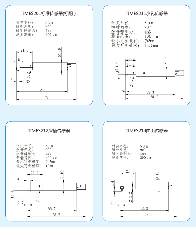 3、垂直量程50μm、400μm两档可调;垂直量程400um,量程增大,有利于凹凸表面的测量;